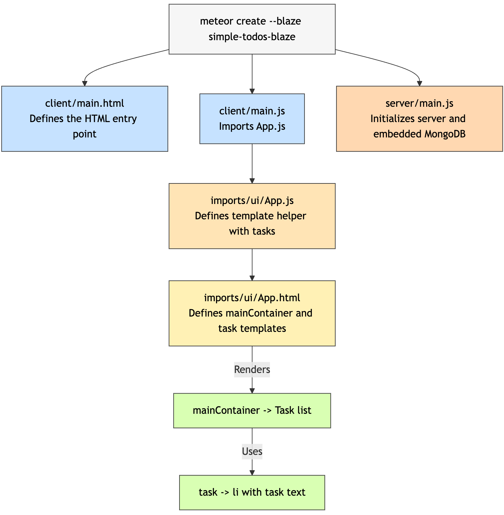Your Blaze code will be located inside the imports/ui directory, and the App.html and App.js files will be the root component of your Blaze To-do app. We haven't made those yet but will soon.