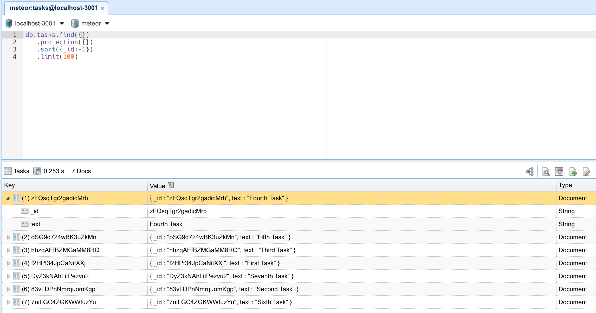 First, let's change our publication to publish the tasks only for the currently logged user. This is important for security, as you send only data that belongs to that user.