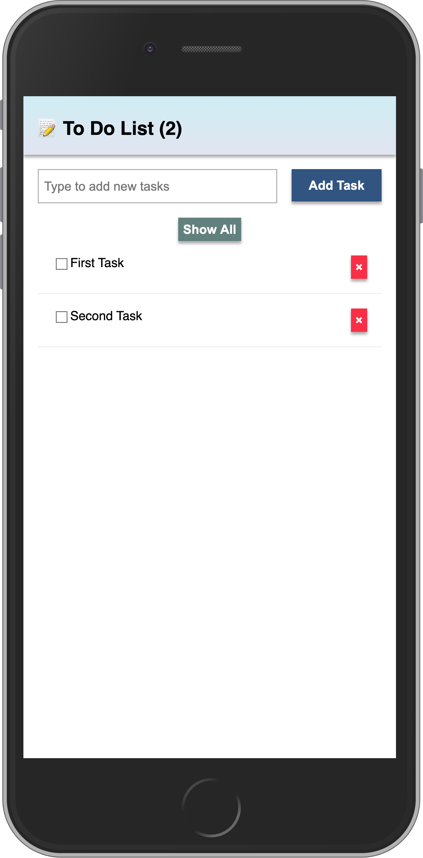 As you are not connecting to your server and database yet, we’ve defined some sample data directly in App.jsx to render a list of tasks.